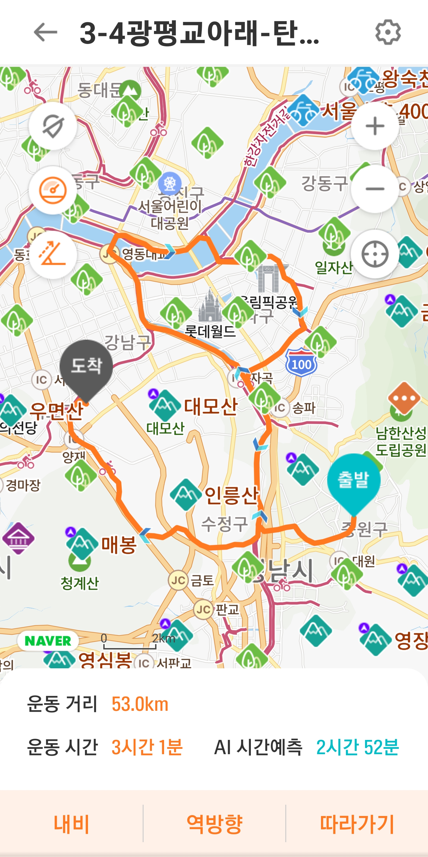 승차 : 상대원~뚝섬한강공원~잠실철교~성내천올림픽공원역~탄천~고고동(상적천)