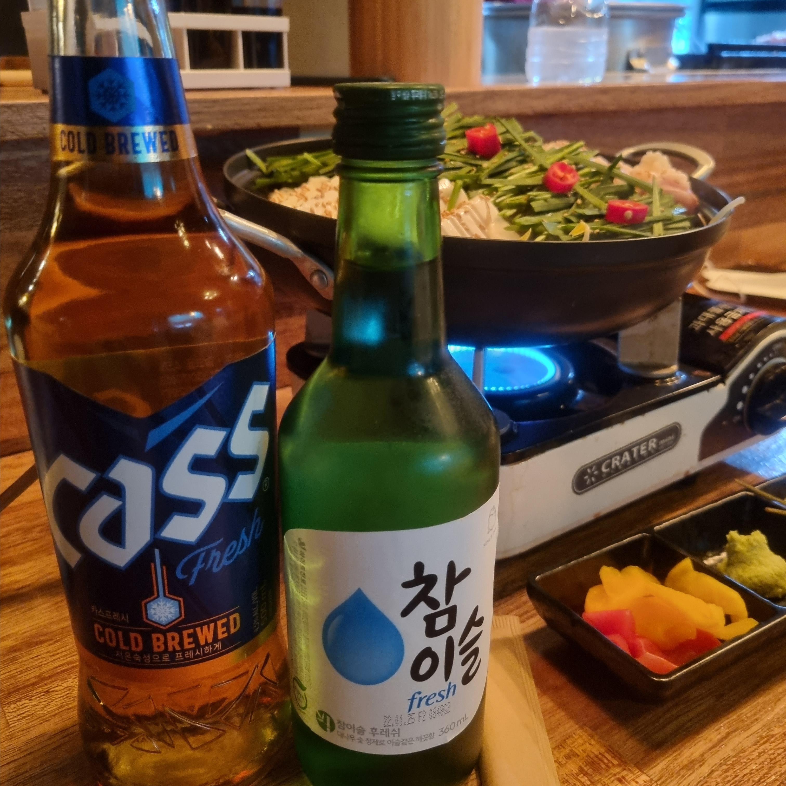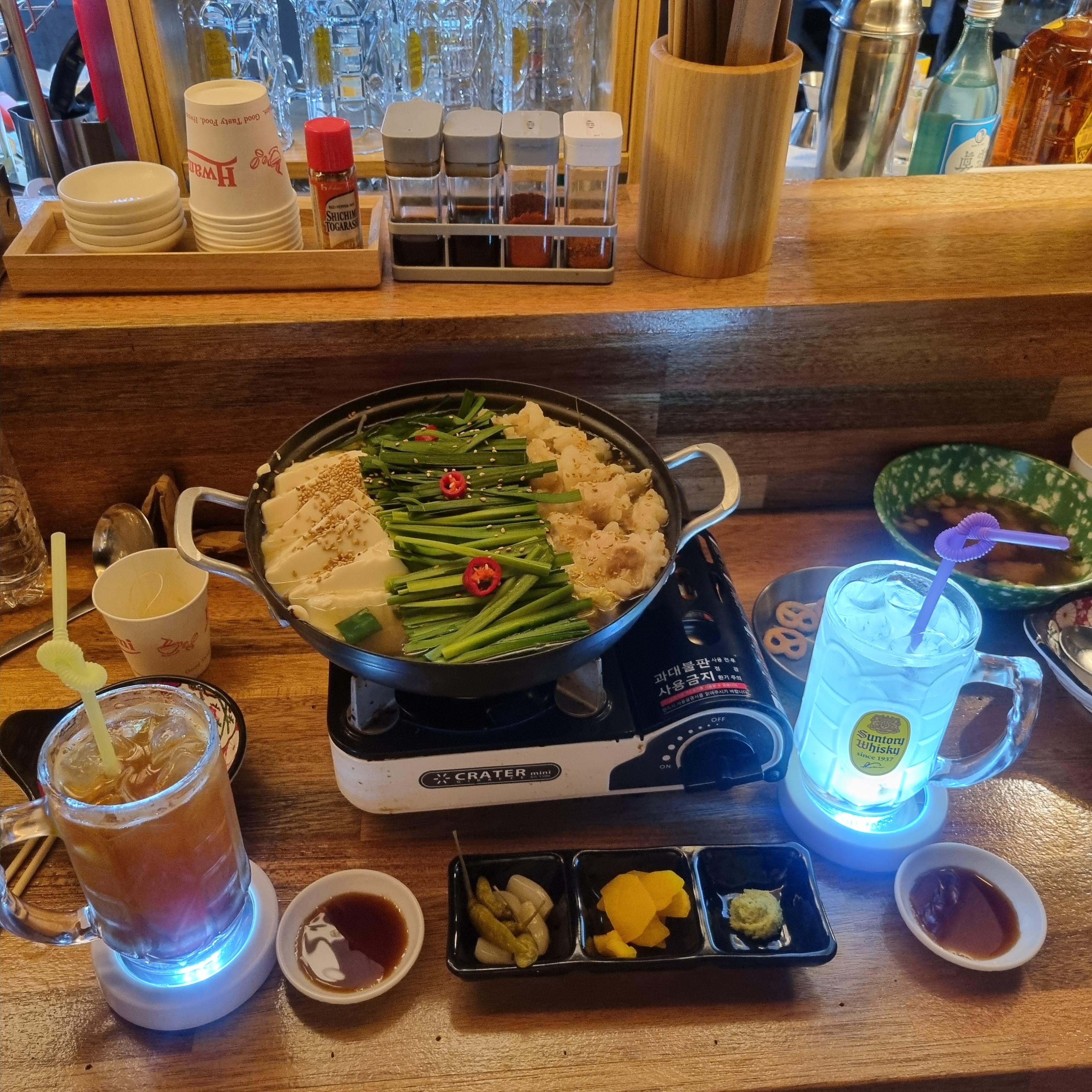 청주바를 방문한 두 번째 적입니다. 처음 방문했을 때와 같은 안주로 대창나베 같은 것을 주문했습니다.
