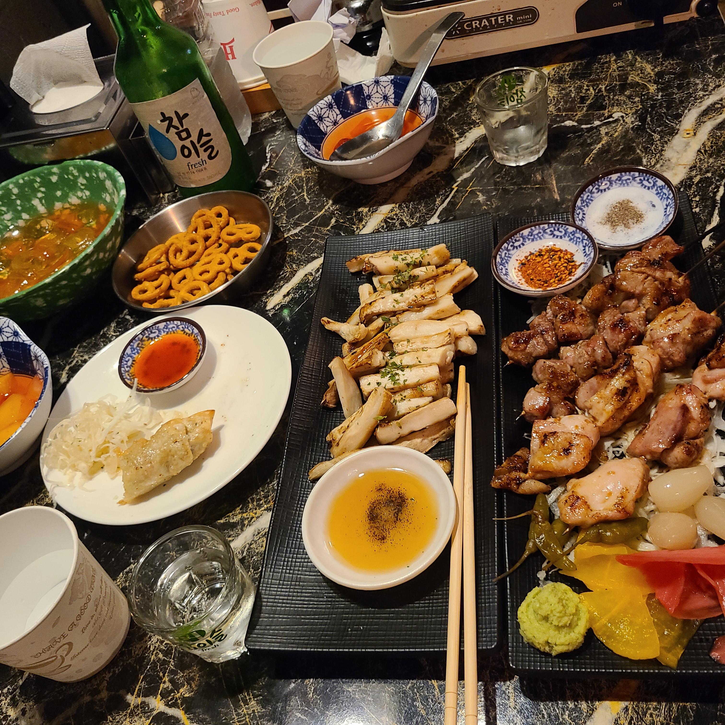 꼬치세트 주문했는데 재고가 없어서 이것저것 단품으로 주문했습니다. 청주사창동술집 적적꼬치도 맛있고 술 종류도 다양하고 특히 하이볼도 있어서 굿!