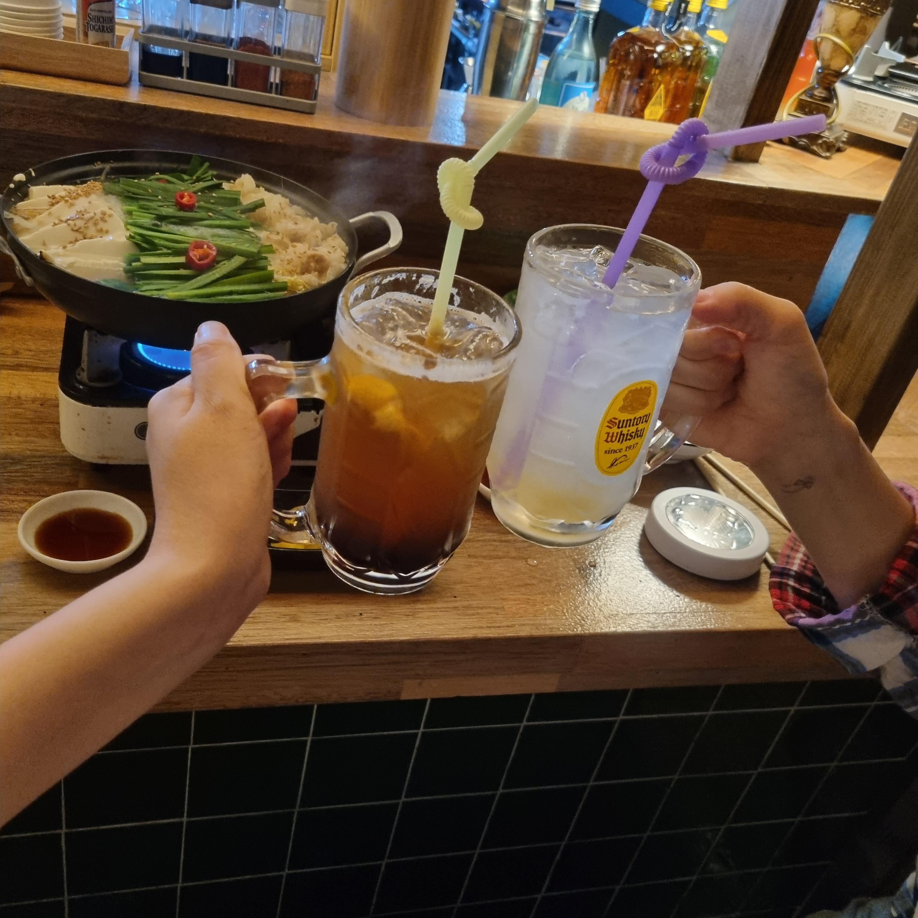 청주바를 방문한 두 번째 적입니다. 처음 방문했을 때와 같은 안주로 대창나베 같은 것을 주문했습니다.