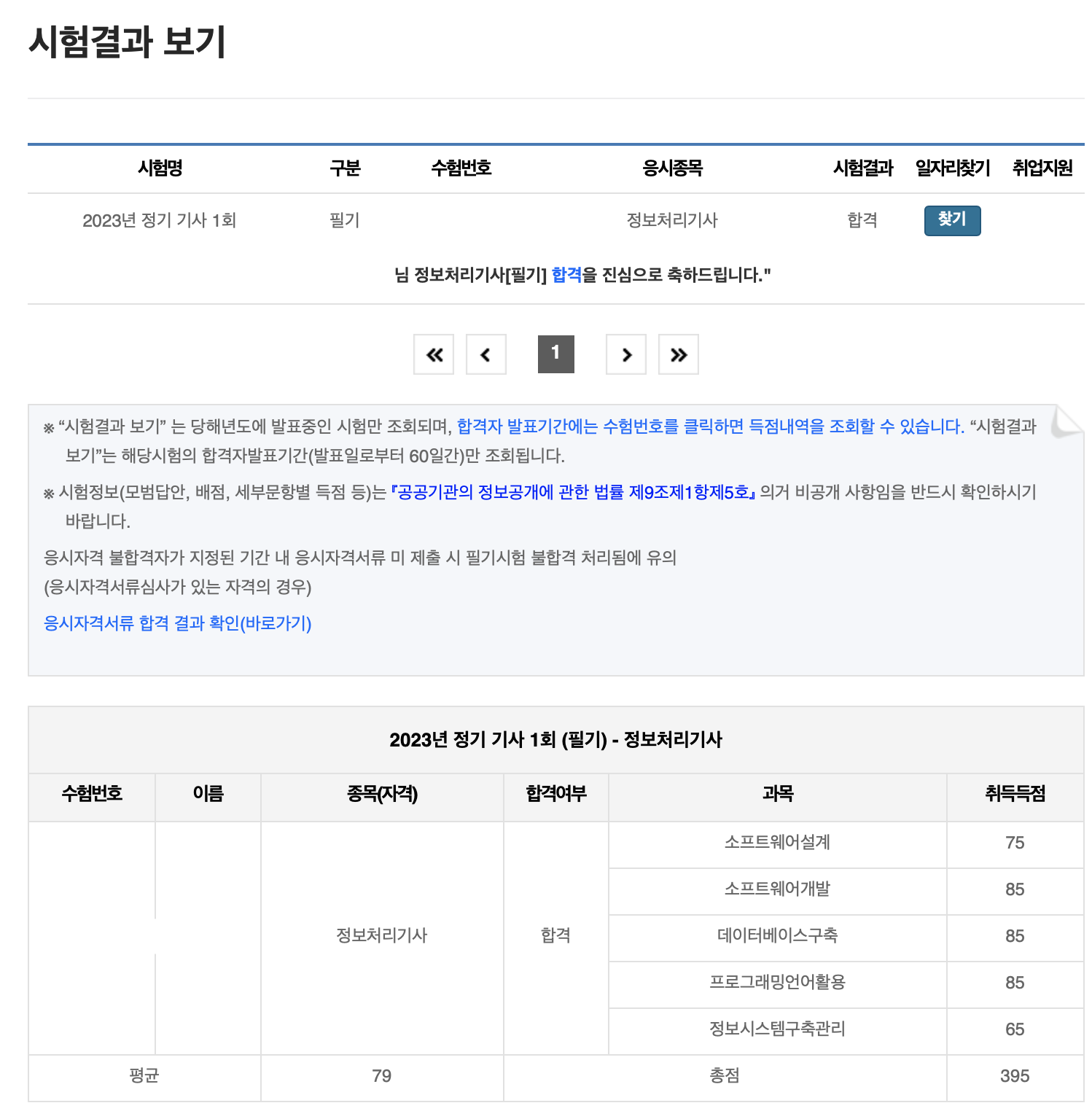 79점으로 합격했는데 생각보다 훨씬 좋았습니다. 잘 본 것 같아요 만족하는.