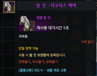 5) 이것으로 NPC(생활물품 교환)에게 자고라의 백마로 교환할 수 있습니다.